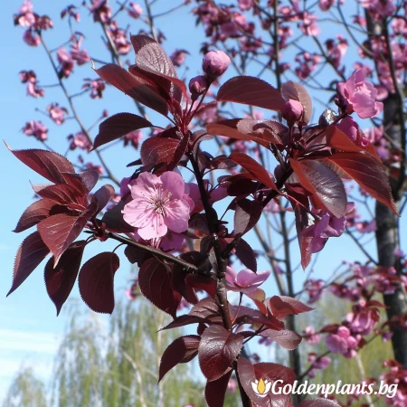 Този нов хибриден сорт Японска вишна има красиви розови цветове, а листата остават червени през цялото лято. Това го прави особено подходящ за акцент в озеленяването.